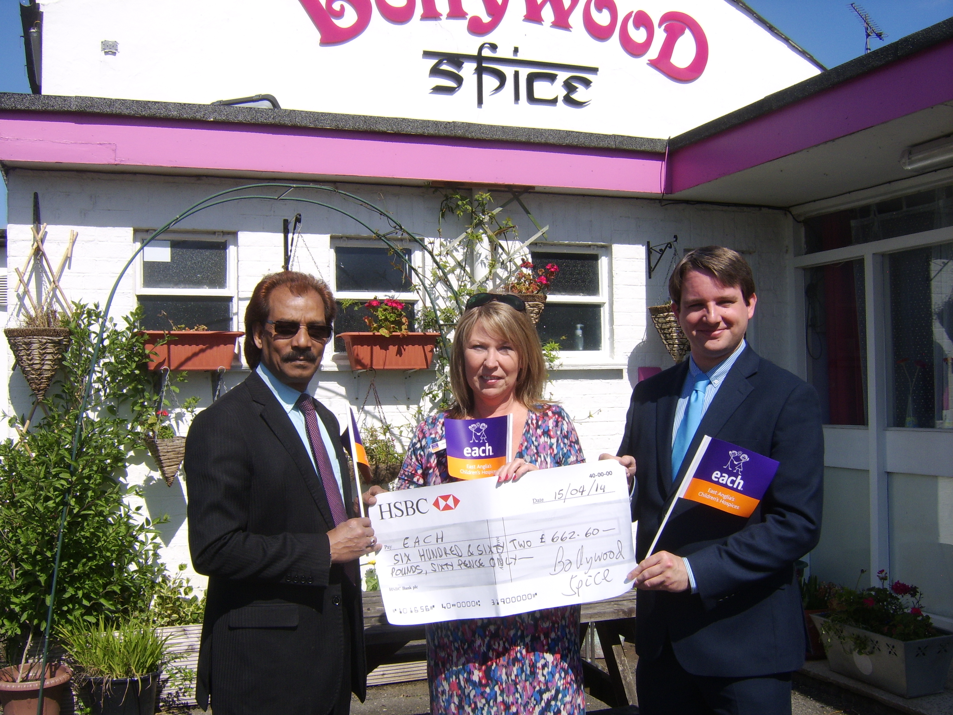 Karen Newton EACH Cambridgeshire Fundraiser says “I am delighted that the charity lunch at Bollywood Spice was so successful and would like to thank Cllr James Hockney and the proprietors of Bollywood Spice for organising such a wonderful event. The money raised could fund two in-house Day Care sessions in our Milton Hospice (lasting 16 hours) enabling the child to meet other children or young people facing similar challenges, allowing siblings to have some “special time” with their family, or providing the parents with the opportunity to spend time with their sick child without the responsibility of 24-hour care.”